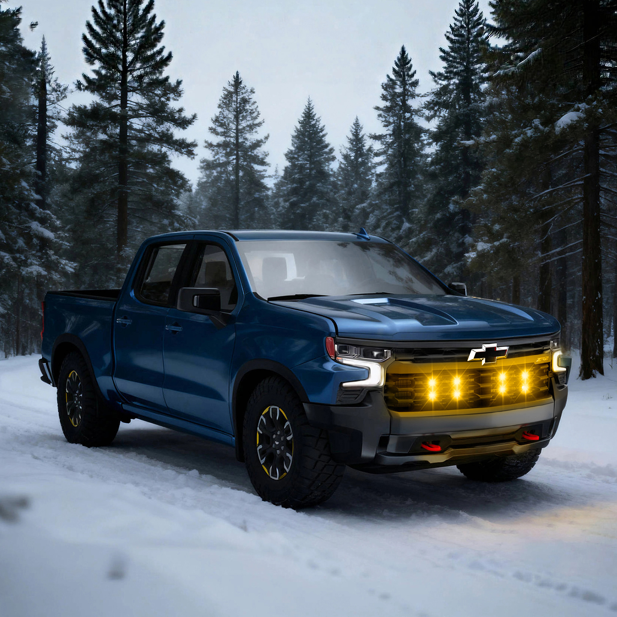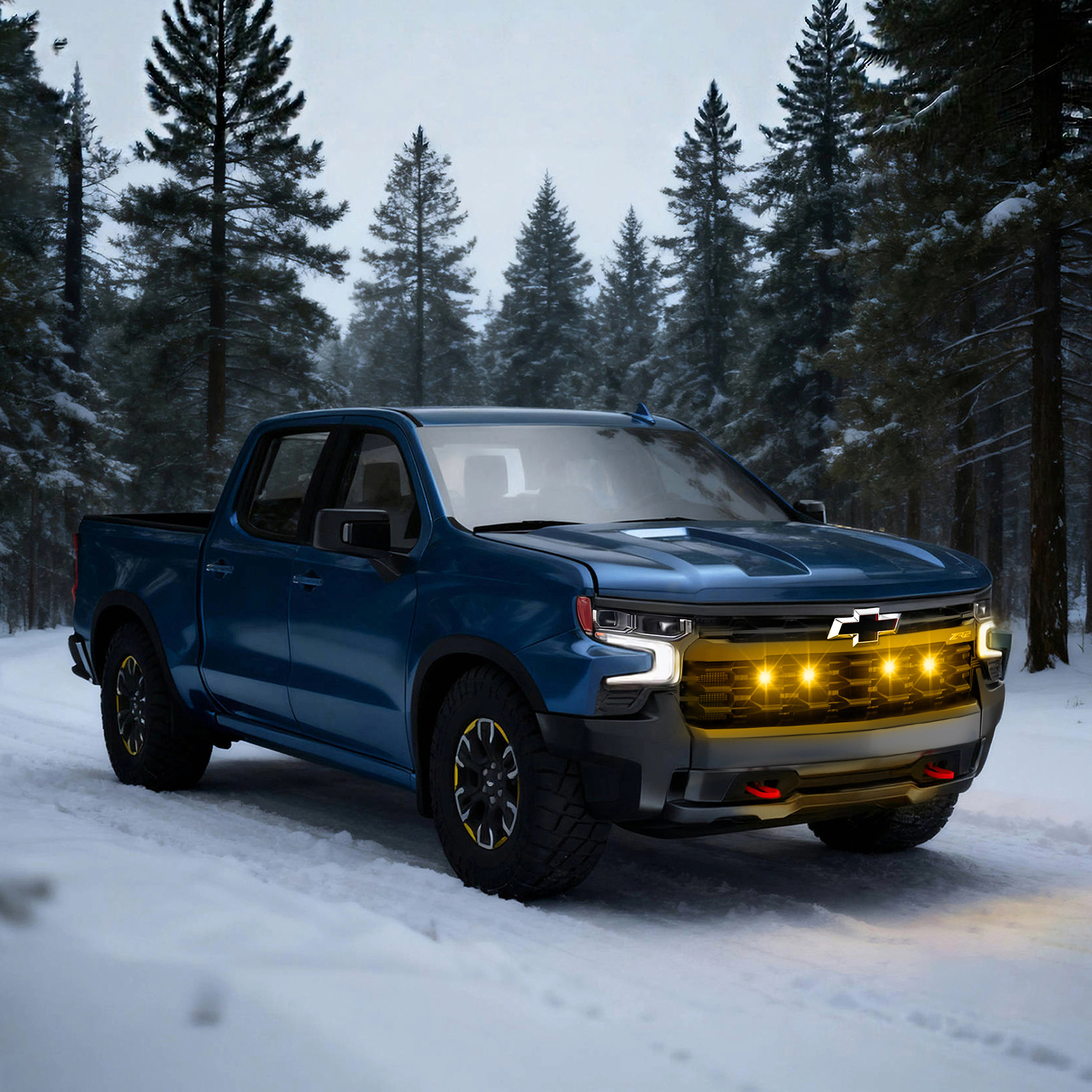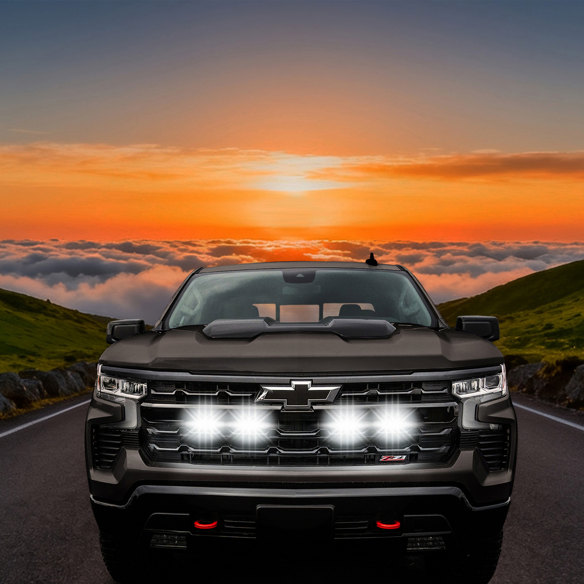 Tiny Monster Grille Kit for Chevrolet Silverado 1500 LT/LTZ/RST, 2022-25 (4 Light Bars, Harness, Brackets)-61CC4