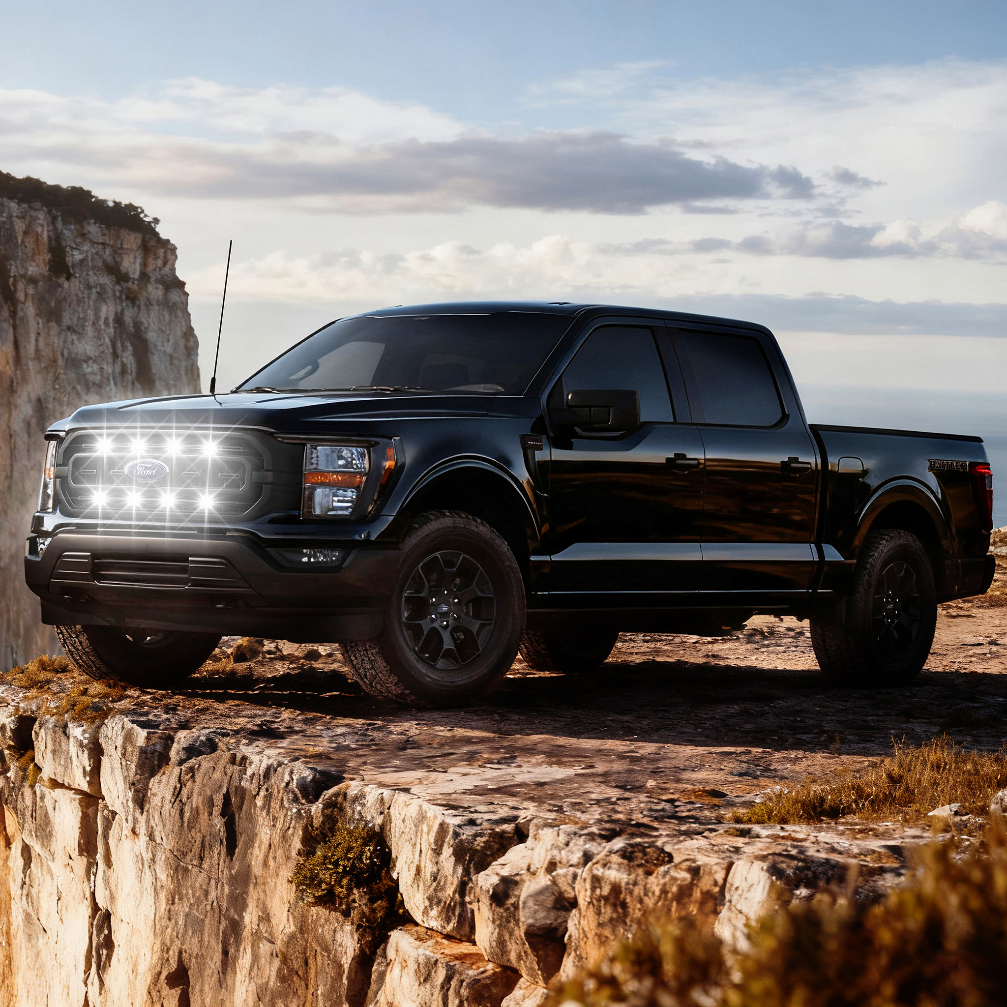 Tiny Monster Grille Kit for Ford F-150 Tremor, 2024-25 (8 Pods, Harness, Bracket)-42FB8