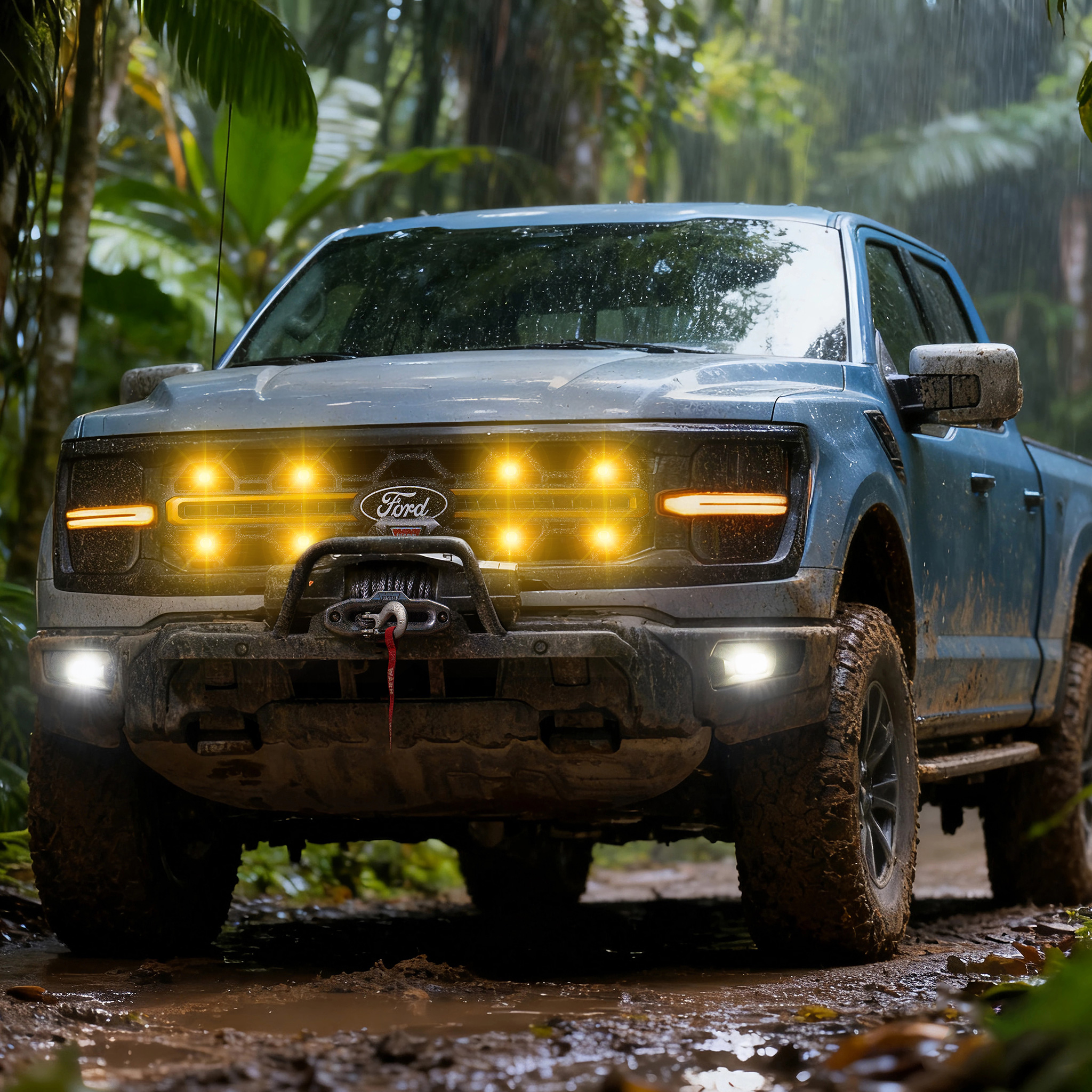 Tiny Monster Grille Kit for Ford F-150 Tremor, 2024-25 (4 Pods, Harness, Bracket)-42FB4