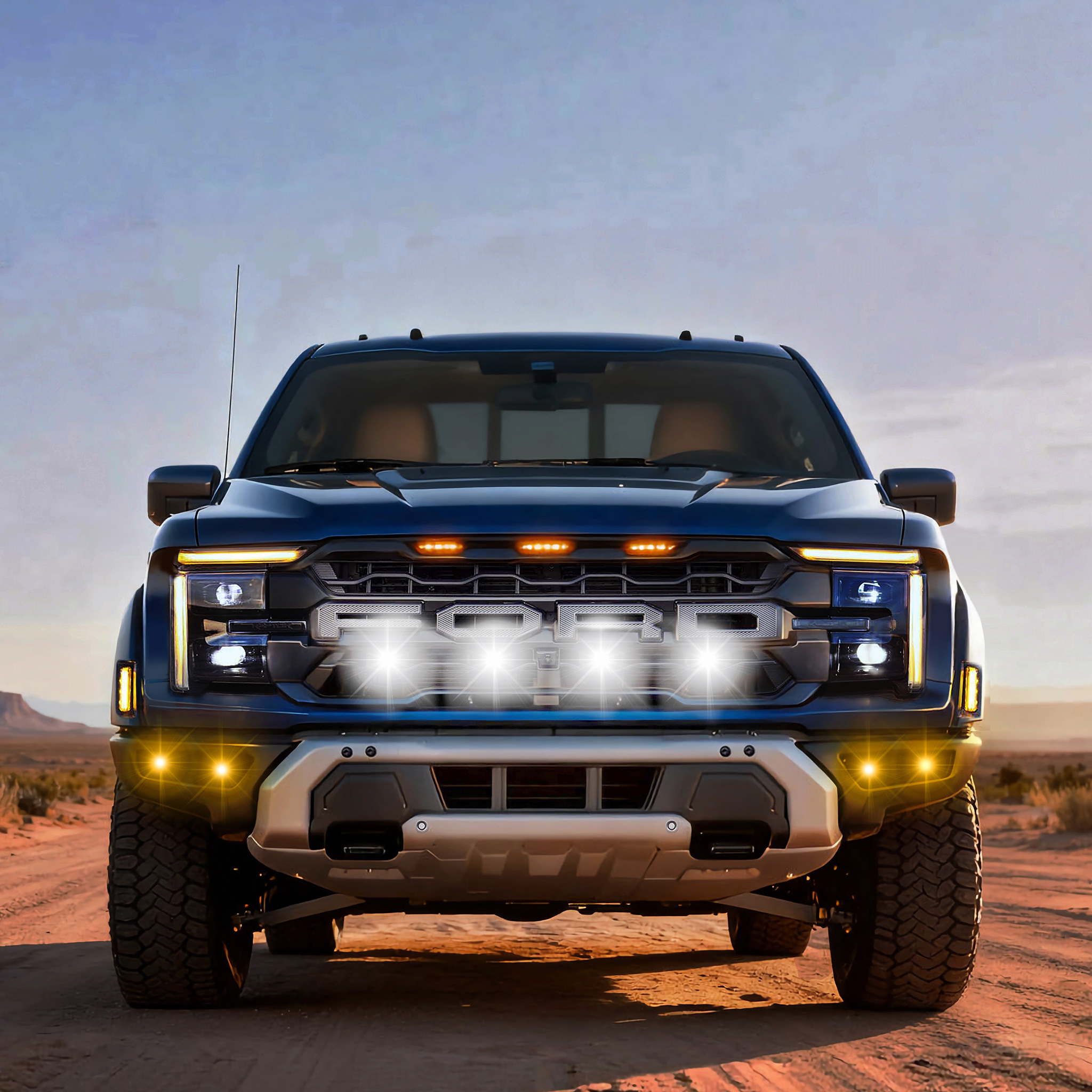 Tiny Monster Grille Top Kit for Ford, F-150 Raptor 2024-25 (4 pods, harness, bracket)-42FA4T