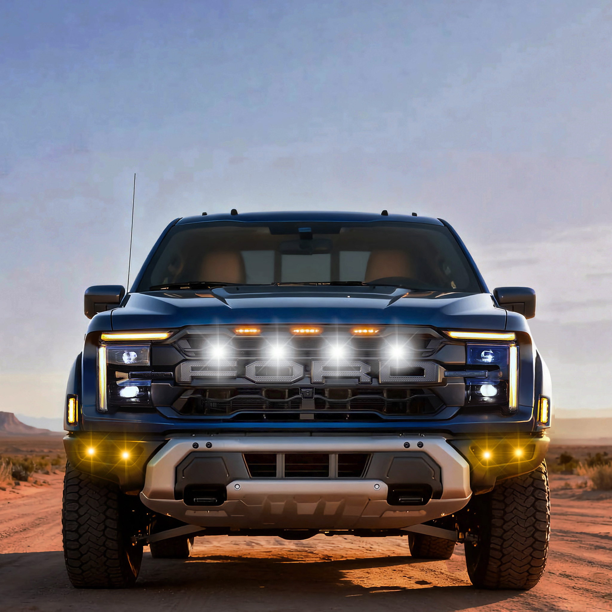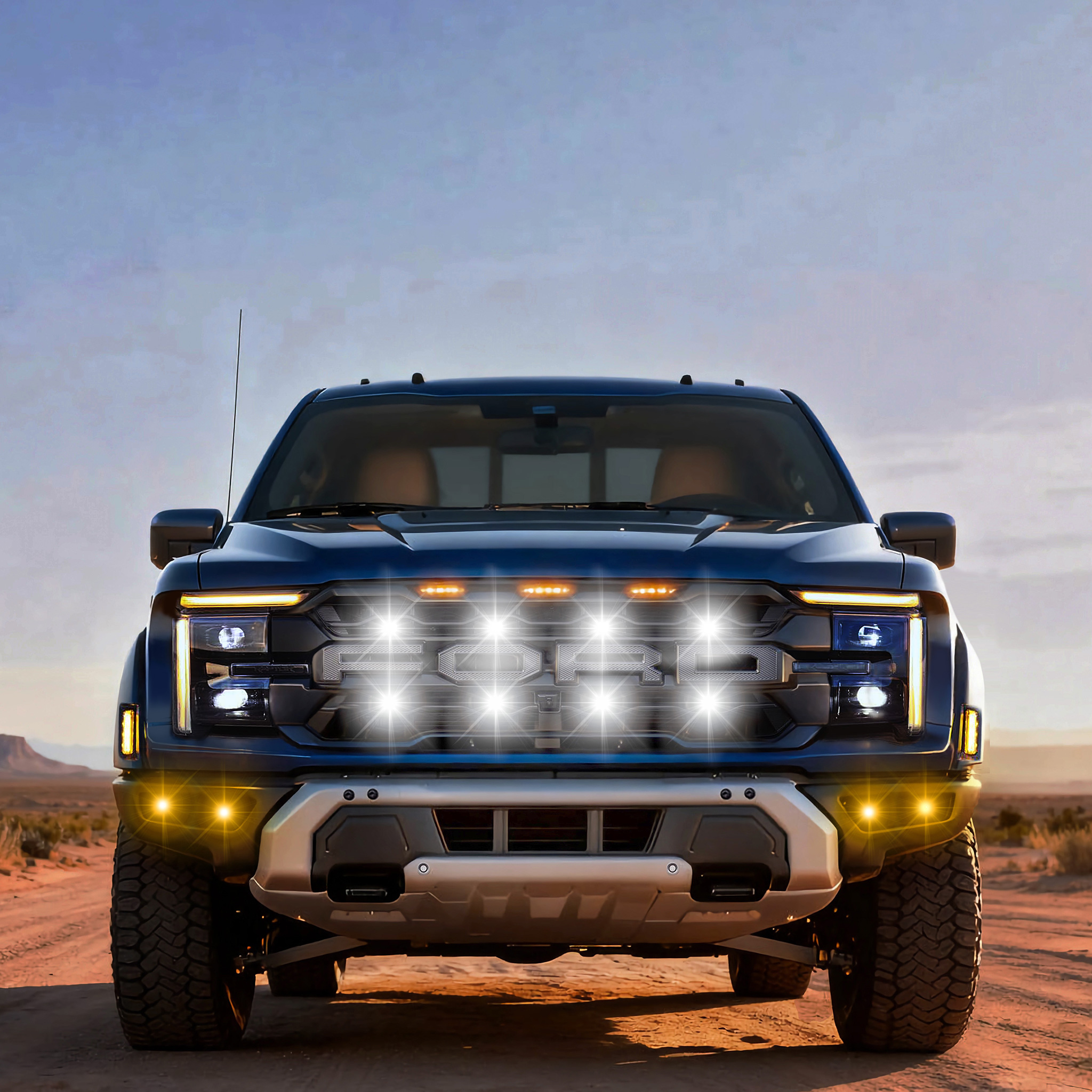 Tiny Monster Grille Kit for Ford F-150 Raptor, 2024-25 (8 Pods, Harness, Bracket)-42FA8