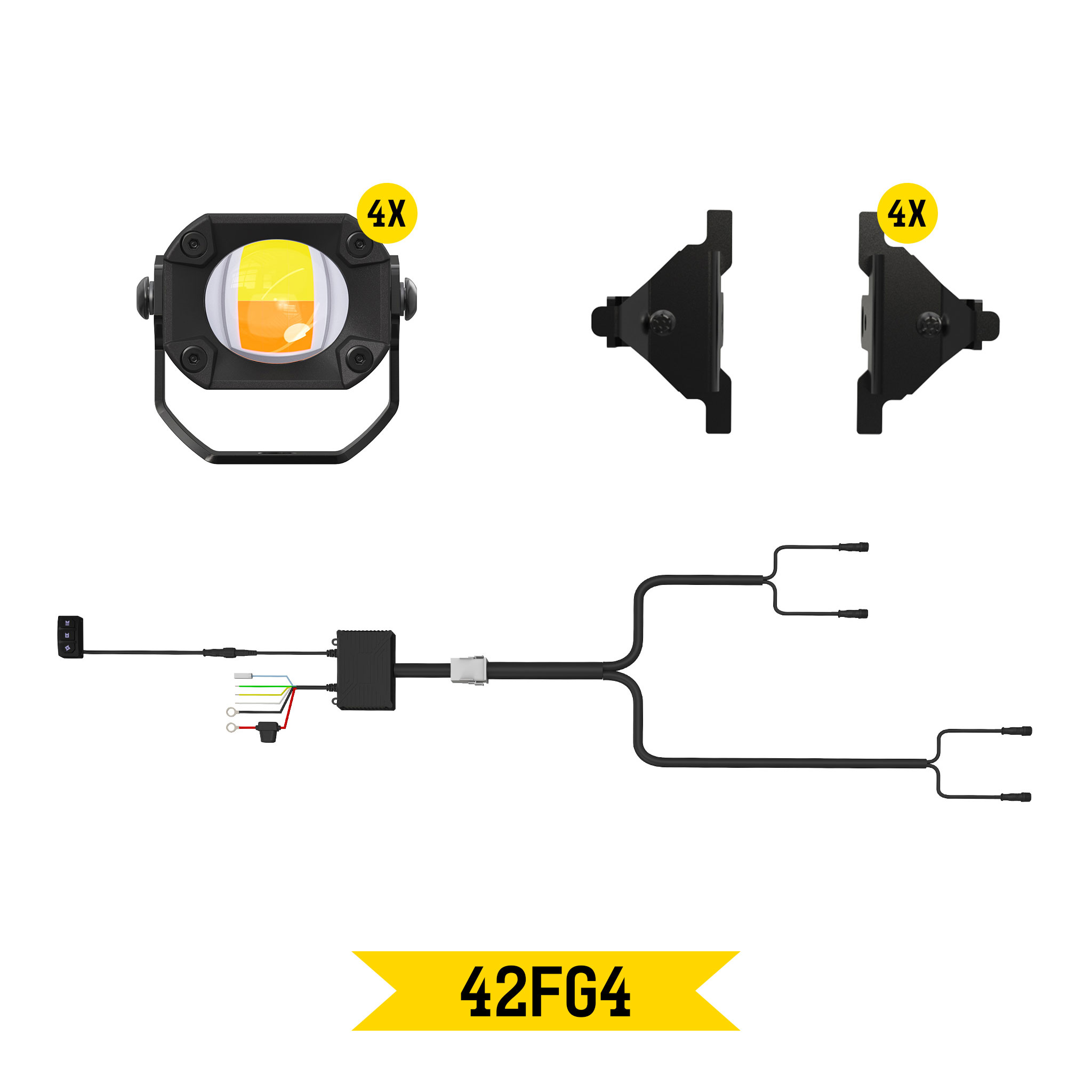 Tiny Monster Grille Kit for Ford Super Duty, 2024-25 (4 Pods, Harness, Brackets)-42FG4